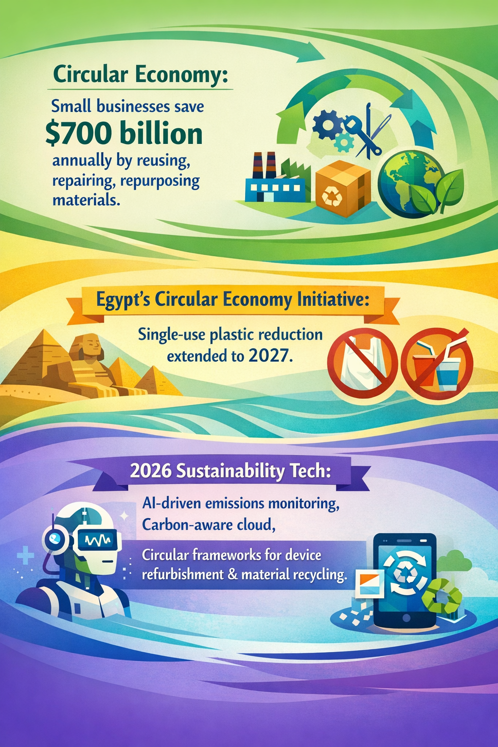 Concurrently, small businesses engaged in reuse, repair, and repurposing of materials stand to save $700 billion annually in material costs, positioning circular economy practices as a competitive advantage (FWBusiness). Expansion of such models alongside government-led initiatives like Egypt’s extension of its single-use plastics ban until 2027 indicates growing global coordination on circular waste management policies (FiscalNote).